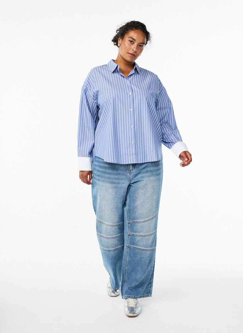 Gestreiftes Hemd mit kontrastierenden Ärmelbündchen