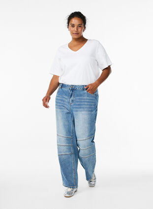 Jeans mit weitem Bein und Ziernähten
