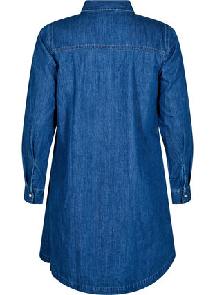 Denim-Kleid aus 100 % Baumwolle für eine bequeme und langlebige Passform mit einer schmeichelhaften A-Linien-Silhouette. Das Kleid hat einen Knopfverschluss mit dekorativen Druckknöpfen, Brusttaschen und einen klassischen Hemdkragen.
