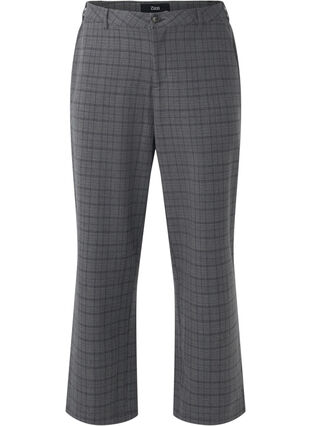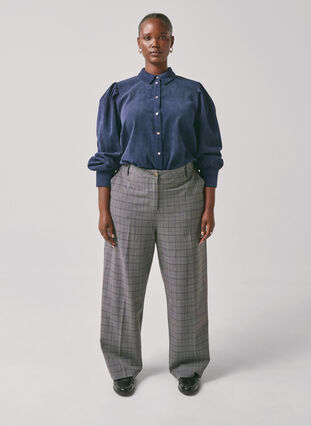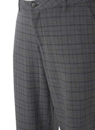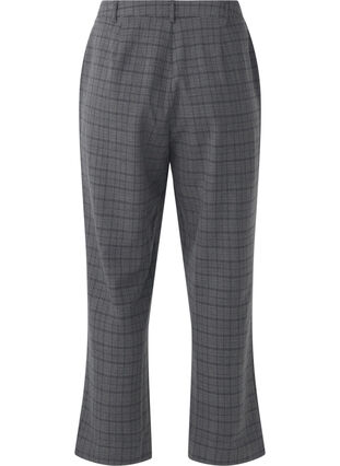 Hose mit klassischem Karomuster, aus weichem, dehnbarem Materialmix mit 68 % recyceltem Polyester und Viskose. Diese Hose hat eine hohe Taille mit Gürtelschlaufen, Taschen vorne, einen Knopf- und Reißverschluss auf der Vorderseite und eine bequeme, gerade Beinform.