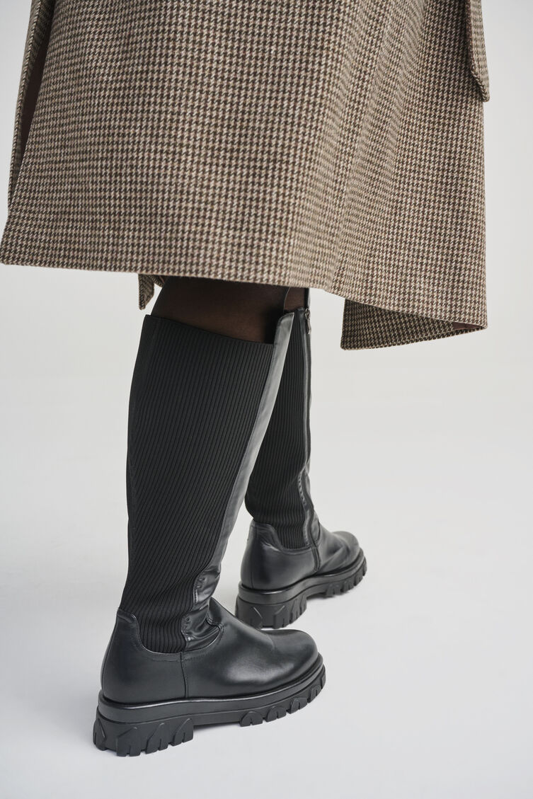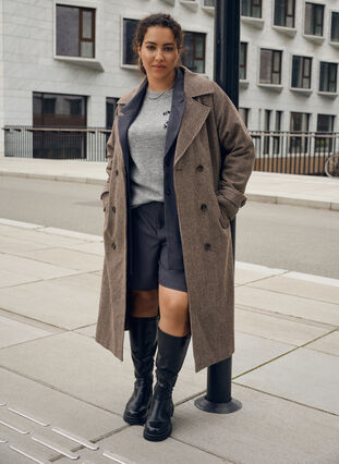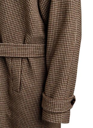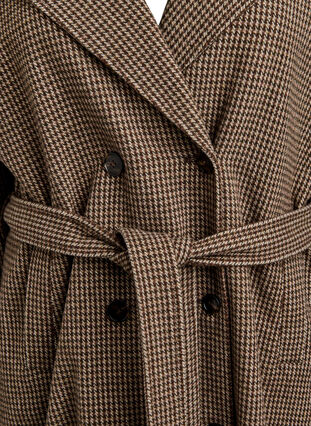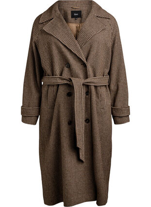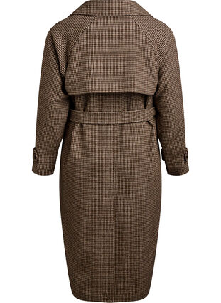 Mantel in weicher, strukturierter Qualität mit klassischem Karomuster. Der Style hat eine schmeichelhafte, lange Silhouette mit Raglanärmeln, breitem Revers und einem zweireihigen Verschluss auf der Vorderseite. Der Mantel hat einen abnehmbaren Bindegürtel in der Taille, Vordertaschen und verstellbare Riemen an den Ärmelabschlüssen. Eine dekorative Rückenpasse vervollständigt den klassischen Look, während ein Schlitz auf der Rückseite für gute Bewegungsfreiheit sorgt.