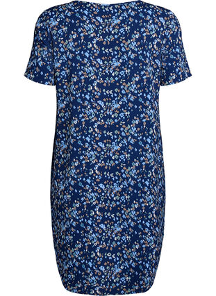Kurzärmeliges Kleid mit Rundhalsausschnitt, das in einem leichten Material mit 55 % recyceltem Polyester hergestellt ist. Das Kleid hat eine lockere Passform mit High-Low-Effekt, die einen femininen Look verleiht.