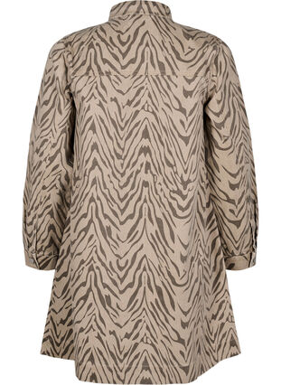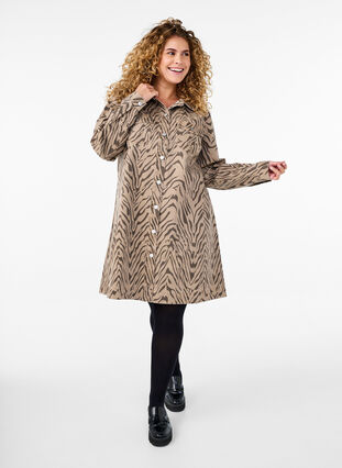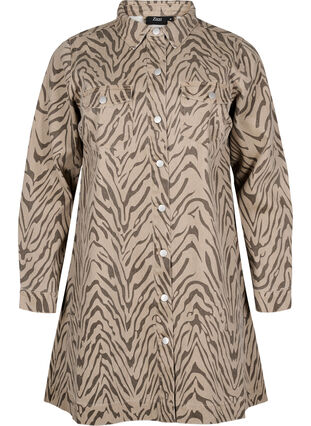 Jeanskleid mit Animal-Print aus 100 % Baumwolle in lockerer A-Linien-Silhouette. Das Hemdblusenkleid kommt mit spitzem Kragen, langen Ärmeln, Brusttaschen und Knöpfen.