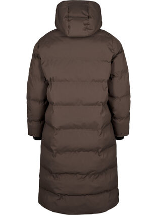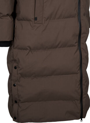 Lange Winterjacke mit einer matten, weichen Oberfläche und gesteppten Partien, die heißversiegelt sind, um Wasser und Wind abzuhalten. Der Stoff ist mit einer Wassersäule von 8000 mm wasserabweisend und leicht atmungsaktiv, was die Jacke ideal für kalte und nasse Wintertage macht. Die Jacke hat keine versiegelten Nähte, was bedeutet, dass bei starkem oder langanhaltendem Regen Wasser eindringen kann.