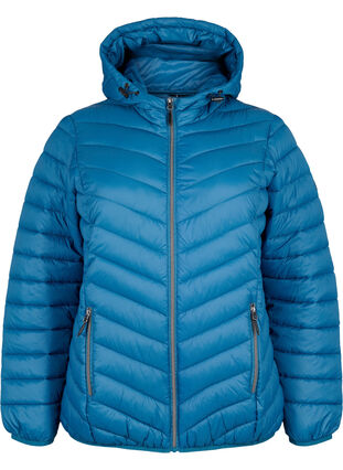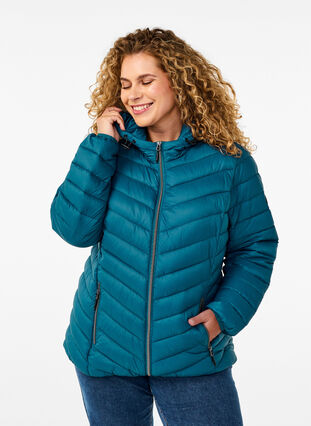Kurze, gesteppte, leichte Übergangsjacke mit Kapuze und Reißverschluss auf der Vorderseite. Das Modell hat praktische Reißverschlusstaschen und ist an den Ärmeln und am Saum elastisch, damit der Wind nicht eindringen kann. Die Jacke ist mit Dupont gefüttert, einer leichten Füllung, die sowohl warm hält als auch atmungsaktiv ist.
