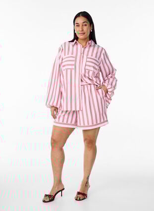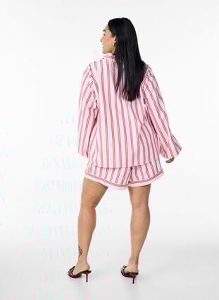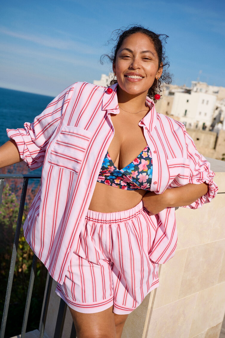 Kurze Hosen mit lockerer Passform, Seitentaschen und hohem und elastischem Bund. Die kurzen Hosen haben ein wunderschönes Streifenmuster und sind aus einem leichten und glatten Material gefertigt, das sich angenehm auf der Haut anfühlt.