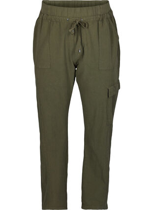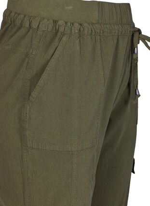 Super bequeme Cargohose aus einem leichten, strukturierten Stoff aus 100 % Baumwolle. Die Hose hat eine lockere Passform mit hoher Taille, einem elastischen Bund und einem verstellbaren Kordelzug, was für eine flexible und bequeme Passform sorgt. Die großen aufgesetzten Taschen auf der Vorderseite, Gesäßtaschen und die Cargotasche an der Seite verleihen einen lässigen und funktionalen Look, während die geraden Beine mit Kordelzügen versehen sind, sodass die Länge angepasst werden kann.