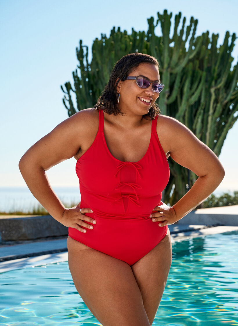 Zizzi Roter Badeanzug mit Schleifen, , Model