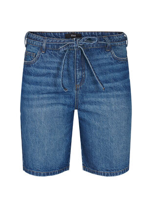 Figurbetonte Jeansshorts aus 100 % Baumwolle mit hoher Taille und Gürtelschlaufen. Die Shorts haben klassische Vorder- und Gesäßtaschen, einen abnehmbaren Bindegürtel sowie einen Knopf- und Reißverschluss.