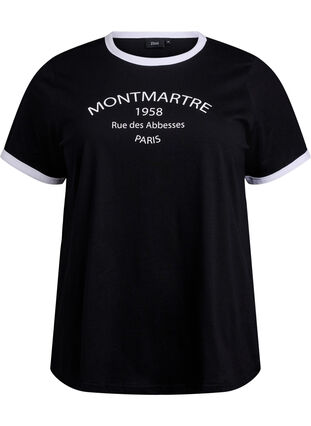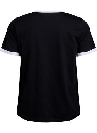 T-Shirt aus 100% Bio-Baumwolle mit kontrastfarbenen Säumen und passendem Frontprint. Das T-Shirt hat kurze Ärmel, einen Rundhalsausschnitt und eine normale Passform.