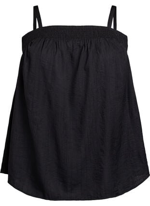 Schlichtes und feminines Oberteil mit schmalen, verstellbaren Trägern, einem breiten gesmokten Einsatz über der Brust und einer lockeren A-Silhouette, die eine bequeme Drapierung bietet. Dieses Oberteil enthält 85 % LENZING™ ECOVERO™ Viscosefasern, die für natürliche Weichheit und Faltenwurf sorgen.