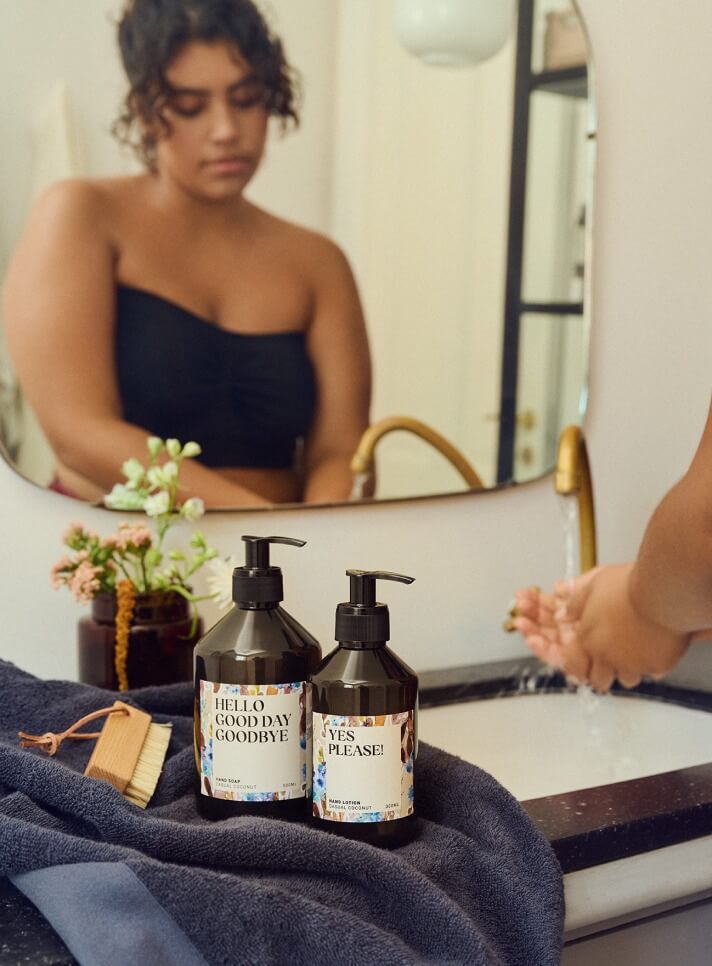 Wenn du aus dem Bad kommst, tupfe dich mit einem Handtuch trocken. Und dann ist es an der Zeit, deine Haut mit Feuchtigkeit zu versorgen.