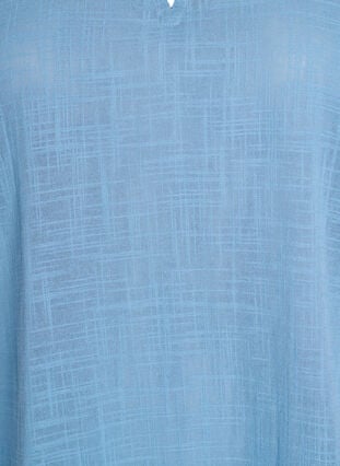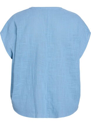 Leichte Bluse aus 100 % Baumwolle mit Struktur und lockerer Passform. Die Bluse hat einen Rundausschnitt mit einem kleinen V-Schlitz vorn und kurze Flügelärmel, die Oberteile leicht bedecken und so einen leichten und femininen Touch erzeugen. Die lockere Silhouette macht die Bluse bequem und perfekt für warme Tage.