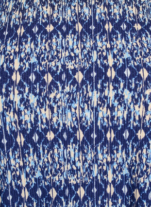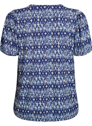 Bluse mit kurzen Ärmeln und elastischen Bündchen, Rundhalsausschnitt und normaler Passform. Die Bluse ist aus einem leichten und dehnbaren Stoff mit feiner Rippenstruktur und einem schönen Allover-Druck gefertigt.