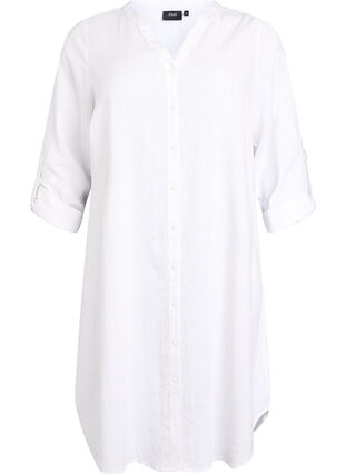 Bezaubernde lange Bluse aus einer leichten und luftigen Mischung aus Leinen und Viskose, die für ein angenehmes und atmungsaktives Tragegefühl sorgt. Die Bluse hat eine normale Passform mit einem abgerundeten Saum, lange Ärmel, Knopfverschluss und einen V-Ausschnitt.